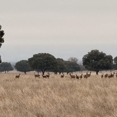 Visitaremos la raña de Cabañeros, espectacular llanura salpicada de encinas, alcornoques y quejigos, donde el paisaje abierto facilita la observación de fauna.