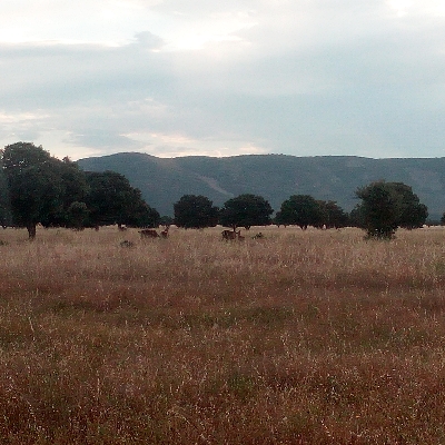 Visitaremos la raña de Cabañeros, espectacular llanura salpicada de encinas, alcornoques y quejigos, donde el paisaje abierto facilita la observación de fauna.