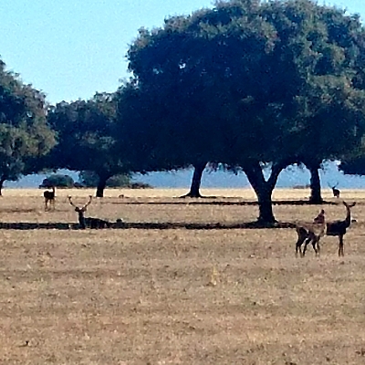 Visitaremos la raña de Cabañeros, espectacular llanura salpicada de encinas, alcornoques y quejigos, donde el paisaje abierto facilita la observación de fauna.